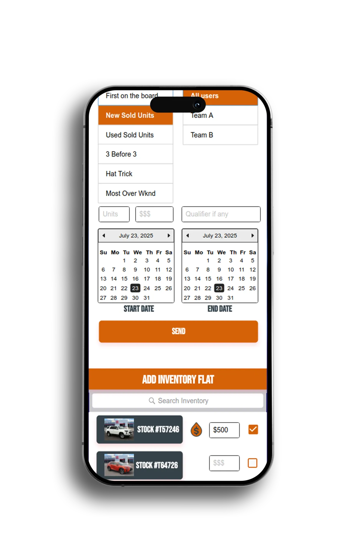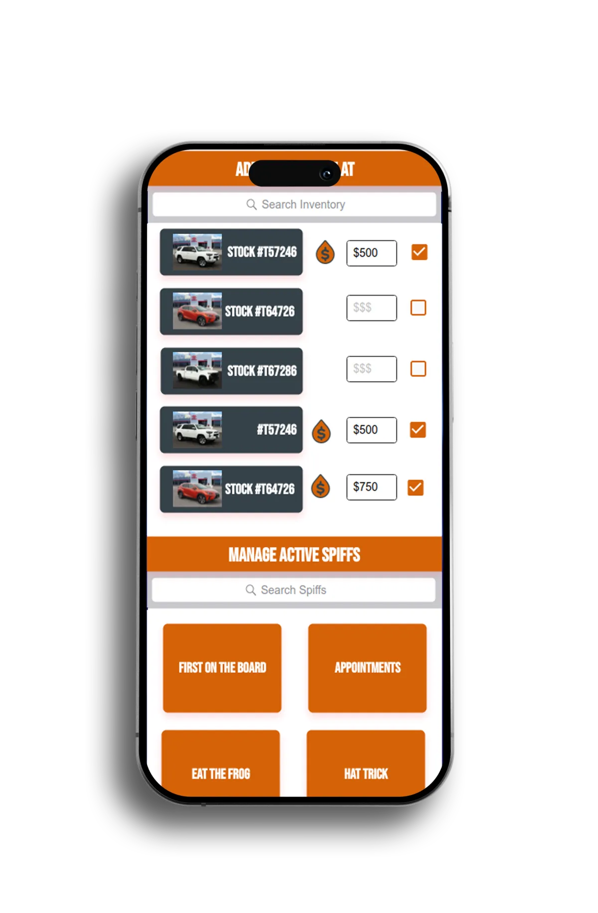 Set automatic spiffs or flats on aging inventory — move slow units faster without constant manager oversight.