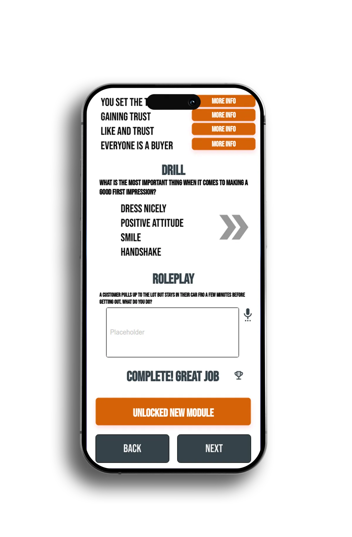 Training Modules – Topic-based learning tracks with interactive lessons and roleplay simulations
